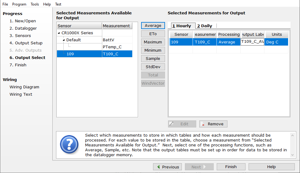 8. Click Finish and save the program. Send the program to the data logger if the data logger is connected to the computer.