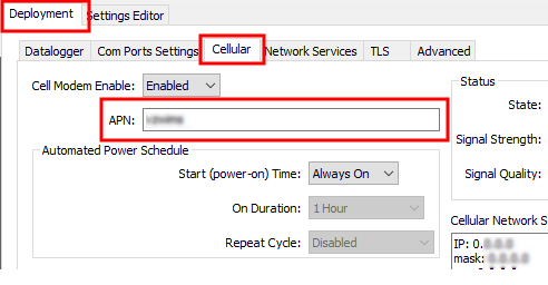 On the Cellular tab, enter the APN provided by your cellular provider.
