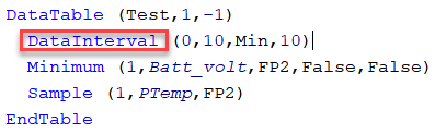 Data tables intended for publishing must include a DataInterval() instruction. For example: