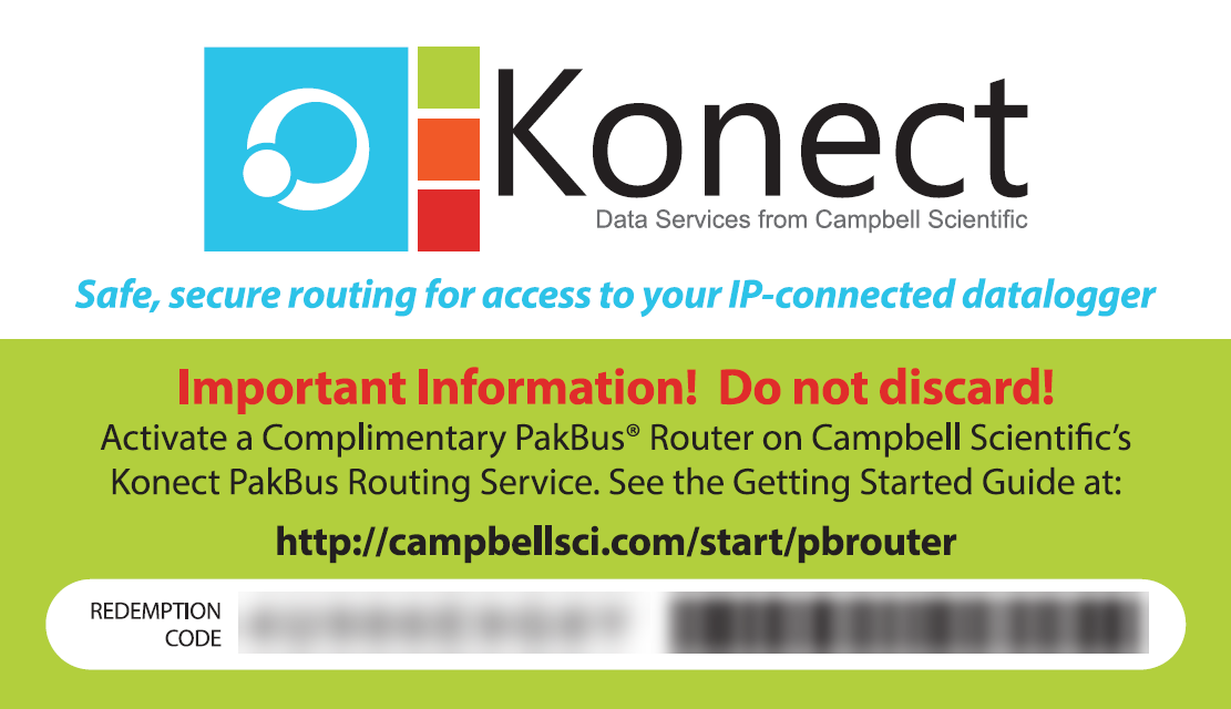 You will need the Konect PakBus Router redemption code that came on a card with the CR350-CELL series.