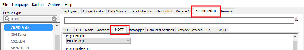 Use MQTTPublishTable() within a DataTable/EndTable declaration to publish stored data via MQTT. See the CRBasic Editor help for detailed instruction information and program examples: ![]()