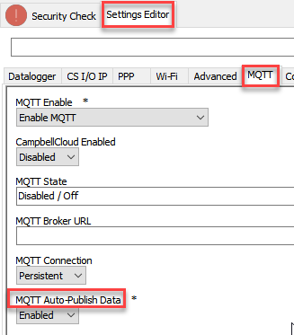 There are two ways to publish data to CampbellCloud: 1) Auto-publish data by enabling the MQTT Auto-Publish Data setting in the data logger settings, or 2) use the MQTTPublishTable() instruction in the data table.