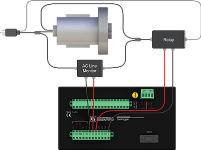 The following image illustrates a simple application wherein a C terminal configured for digital input, and another configured for control output are used to control a device (turn it on or off) and monitor the state of the device (whether the device is on or off).