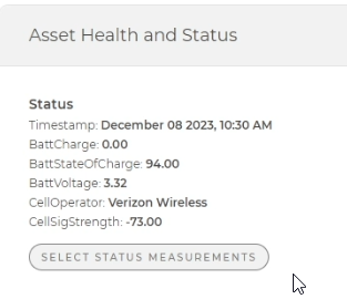 The Status table contains data about the health of an asset including battery and cellular information. This information can be viewed in several Cloud apps.
