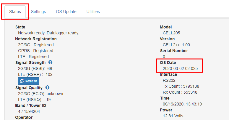 This mode requires CELL200 series operating system 2.00 or newer. Find the CELL200 series OS version in the OS Date field of the Status Tab. For more information, see Updating the operating system and firmware.