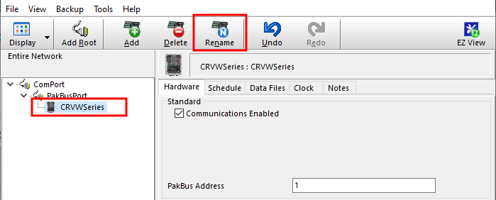 Click CRVWSeries in the network map. Click Rename and enter a device name.