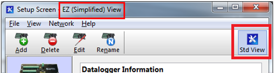 If the Setup Screen comes up in the EZSetup mode, click the Std View button to put it into the standard view mode.