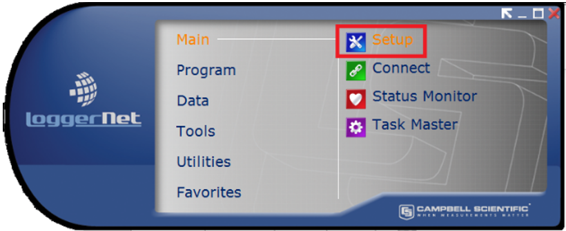 Once a serial or telemetry link between LoggerNet and the base station is physically established, LoggerNet needs to be configured to enable communications to occur through the base station and outward to the remote stations. The Setup Screen