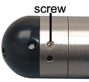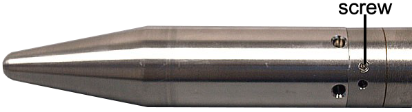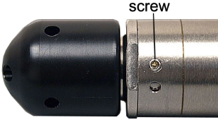 Remove the two screws (Screws on the standard nose cone (top), NPT nose cone (middle), and weighted nose cone (bottom)).