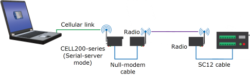 Connect the CELL200-series and radio RS-232 ports using an RS-232 pin-to-pin null-modem cable.