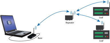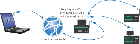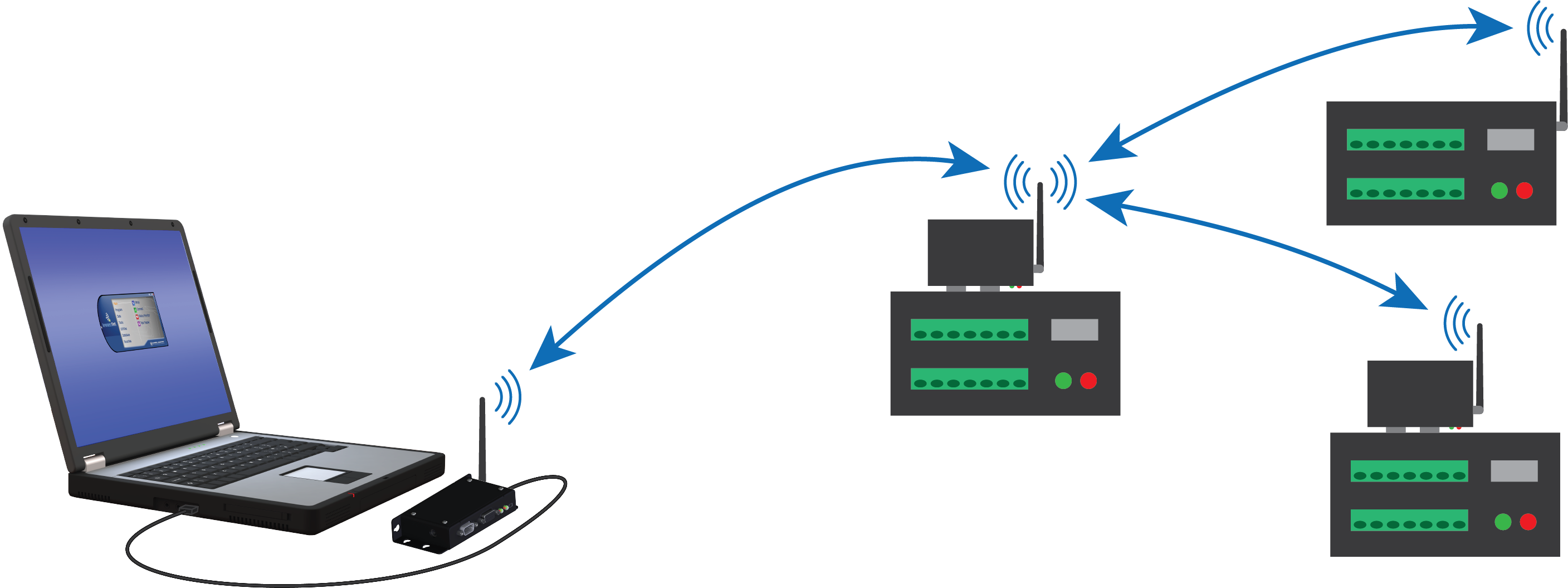The following images show the most frequently used configurations with the RF-series data logger and RF-series radio: