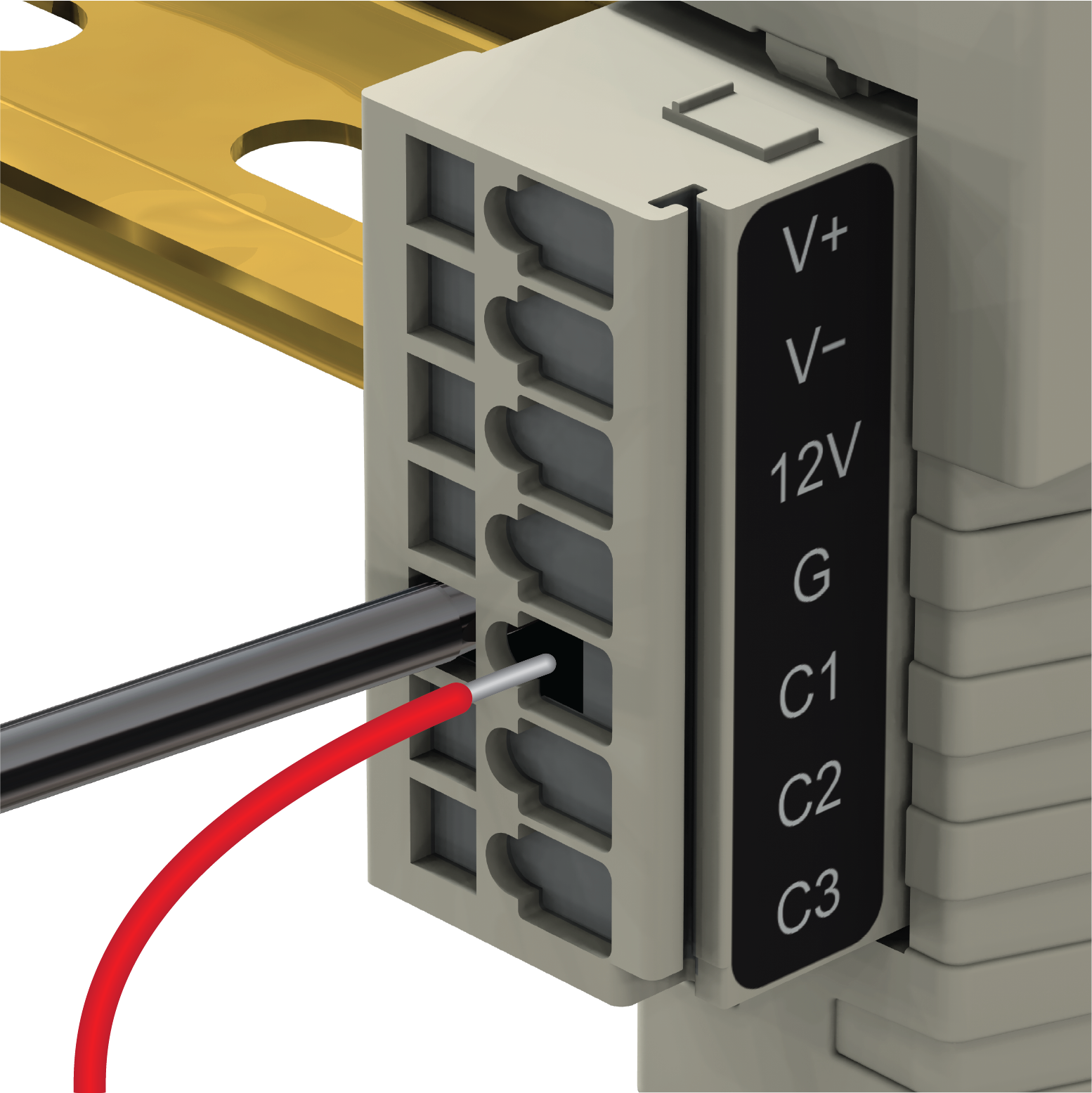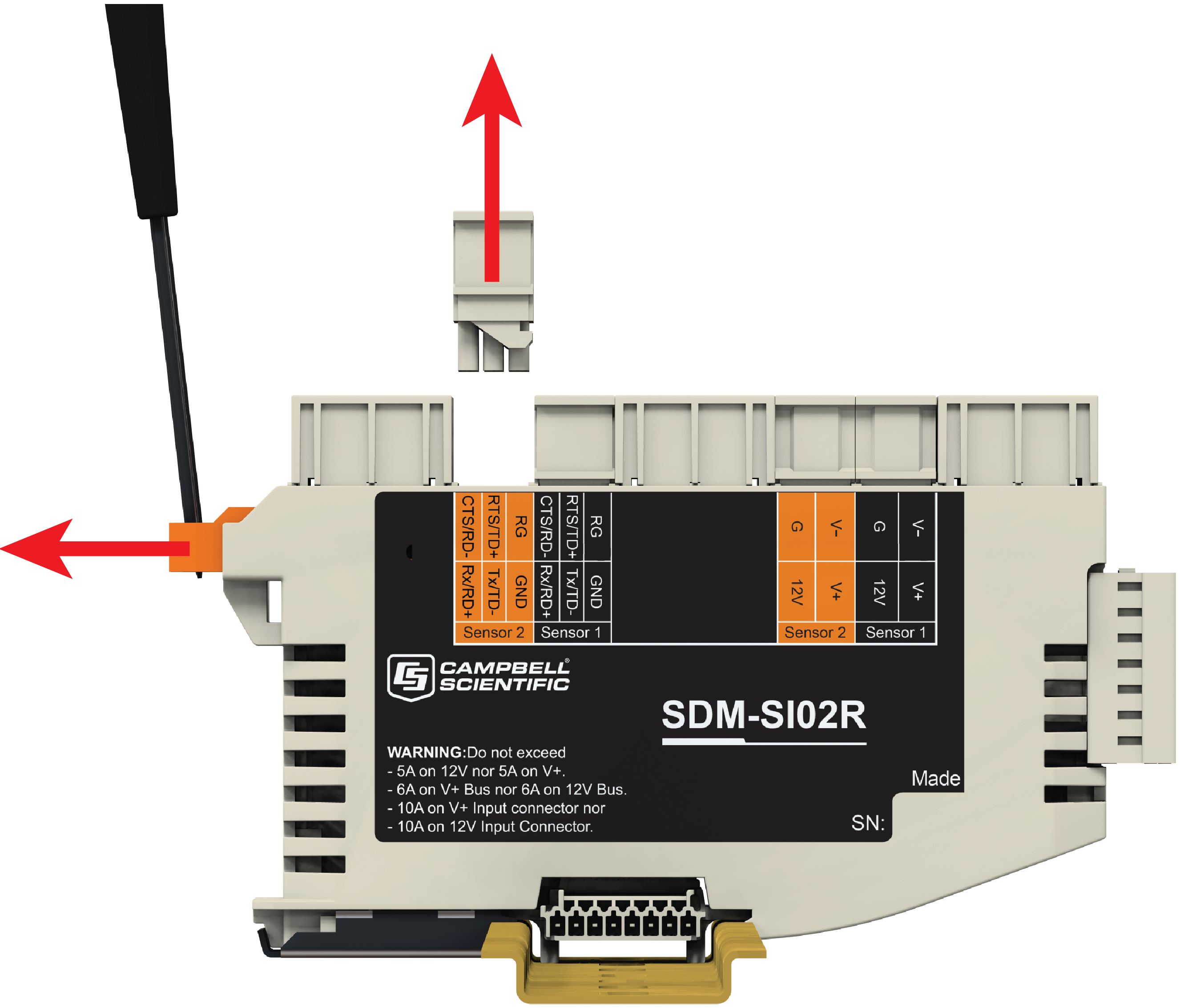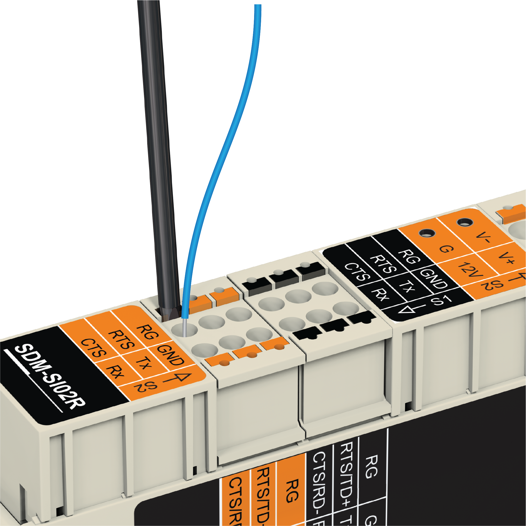 The SDM‑SIO2R 6- Pin and 4-pin sensor communication connectors can handle wire sizes ranging from 16-24 AWG.